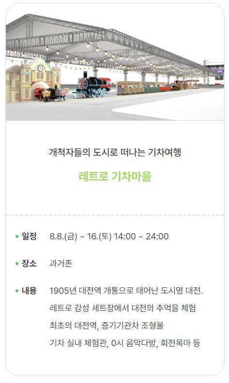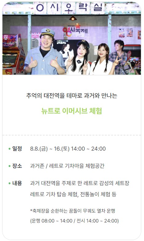 - 장소: 대전역에서 옛 충남도청까지 이어지는 중앙로 일대(약 1km)